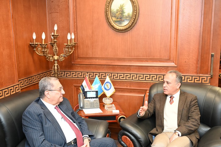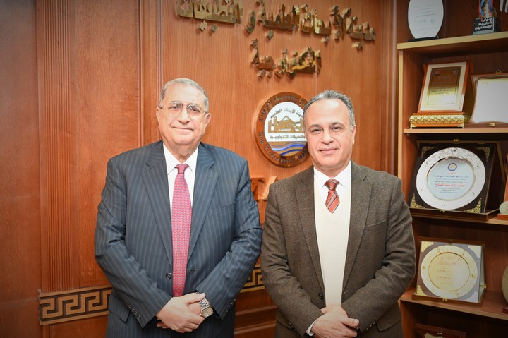 Professor Dr. Mohamed Rashad Abdel Fattah, Acting Director of the City of Scientific Research and Technological Applications, received Dr. Mohamed Mosaad Moharram, Chairman of the Board of Directors of Moharram Group for Chemicals, Vice Chairman of the Board of Directors of the Alexandria Businessmen Association, and a member of the City's Board of Directors, on Tuesday, January 27, 2026, at the City's headquarters in New Borg El Arab. The meeting aimed to explore avenues for joint cooperation between the research and industrial sectors.