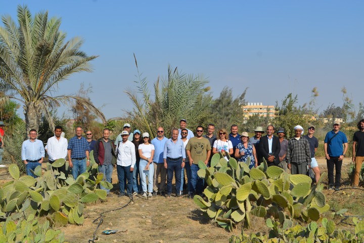 The visit included a field tour of the city's experimental farm, encompassing its various sections. The visitors received a detailed explanation from members of the city's research team participating in the project (Dr. Sami Zaki Mohamed and Dr. Mohamed Hafez Abdel Fattah) regarding modern, water-efficient irrigation techniques used in conjunction with organic fertilizers to achieve sustainable agriculture resilient to climate change.