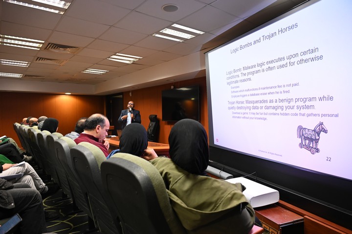 It is worth noting that Dr. Mohamed Abdel Fattah is a prominent Egyptian figure in the field of cybersecurity, holding the position of Systems Engineer at Fortinet, a leading global company in network and information security solutions. This lent significant scientific and practical weight to the lecture.