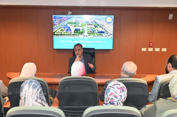A lecture by Dr. Hussein Ali Gad, Head of Patent Registration and Follow-up at the City, reviewed the City's strategies for protecting intellectual property and marketing patents and intellectual property rights for startups.